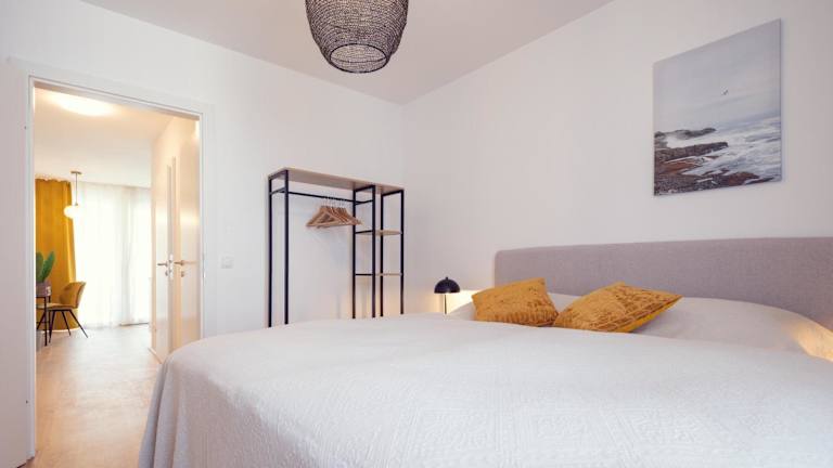 Diese Ferienwohnung besteht aus 2 Schlafzimmern und einem Wohnzimmer. Die voll ausgestattete Küche ist mit einem Kühlschrank und einer Kaffeemaschine ausgestattet. Ein Badezimmer mit einer Badewanne oder Dusche und kostenlosen Pflegeprodukten ergänzt das Angebot. Handtücher und Bettwäsche werden zur Verfügung gestellt.