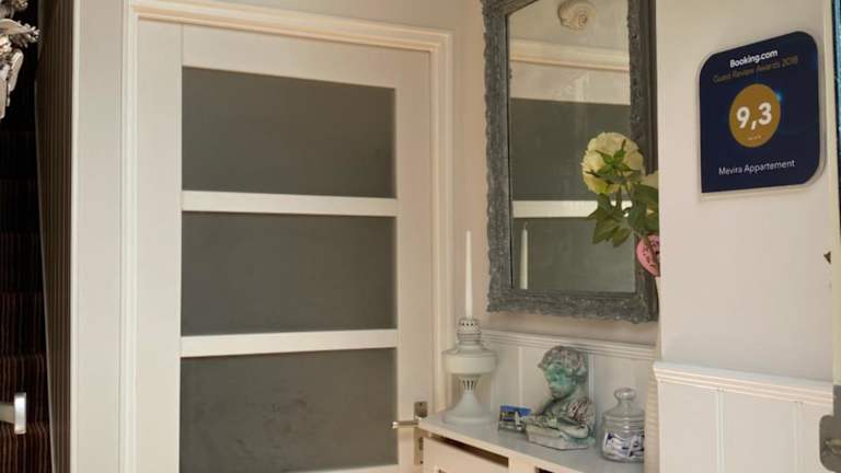 Die Unterkunft Mevira Appartement verfügt über ein modernes Zimmer mit einem Balkon und Blick in den Garten. Der Sitzbereich ist mit einem Flachbild-TV ausgestattet. Die voll ausgestattete Küche bietet unter anderem einen Kühlschrank, Ofen und verschiedene Kaffeemaschinen. Zur Ausstattung gehört ebenfalls ein eigenes Badezimmer mit Dusche und Haartrockner. Eine Mikrowelle, ein Toaster und ein Wasserkocher sind ebenfalls vorhanden.