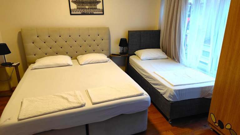 Die Zimmer im Meydan Otel Uskudar sind komfortabel eingerichtet und bieten einen Schreibtisch. Die Gäste haben Zugang zu einem Gemeinschaftsbad und können Hausschuhe und Bettwäsche nutzen. Hier finden Sie alles, was Sie für einen angenehmen Aufenthalt benötigen.