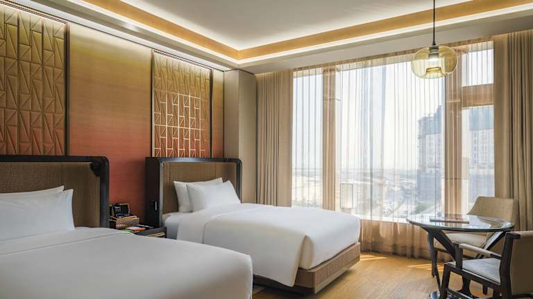 Die Zimmer des MGM Cotai sind modern und klimatisiert. Die meisten Unterkünfte bieten einen herrlichen Meerblick. Zur Ausstattung gehören Teppichböden, ein Doppelbett oder Kingsize-Bett, ein Safe, eine Minibar, ein Schreibtisch sowie eine Tee-/Kaffeestation. Jedes Zimmer verfügt über ein Badezimmer mit Dusche und Badewanne, Kosmetikartikeln und Haartrockner. Hausschuhe und Wifi (ohne Gebühr) sind ebenfalls verfügbar. Zudem stehen rollstuhlgerechte Zimmer zur Verfügung.