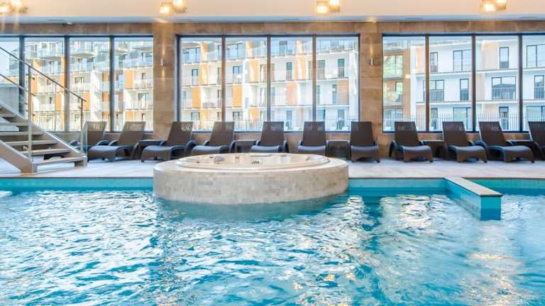 Im Freizeitangebot sind ein Fitnessraum, ein Pool, ein Kinderspielplatz und der Zugang zu 30 Kilometer langen Radwegen vorhanden. Velofahren ist in unmittelbarer Nähe möglich. Der Poolkomplex wird von einem Drittanbieter verwaltet und ist von 09:00 bis 21:00 Uhr geöffnet.