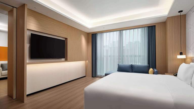 Die Unterkunft Microtel by Wyndham Qingdao Huangdao liegt weniger als 24 km von der Kathedrale St. Michael sowie 24 km von Pichai Yuan entfernt in der Stadt Qingdao. Weitere Sehenswürdigkeiten wie der Zhanqiao Pier, Xiao Qingdao und der Luxun Park befinden sich ebenfalls in einer Entfernung von rund 25 km. Der Flughafen Qingdao Jiaodong International ist 52 km entfernt.