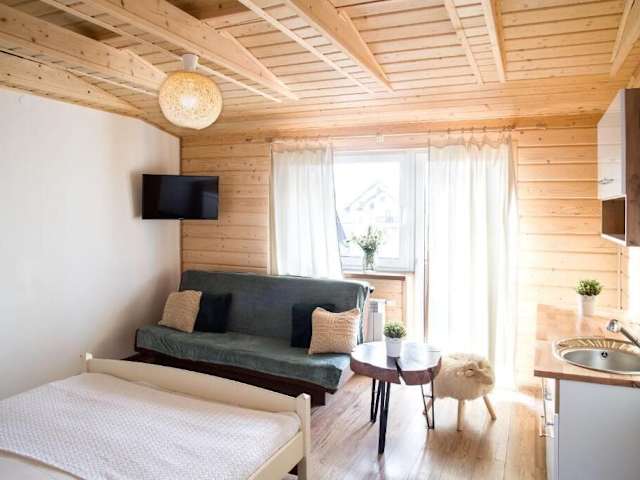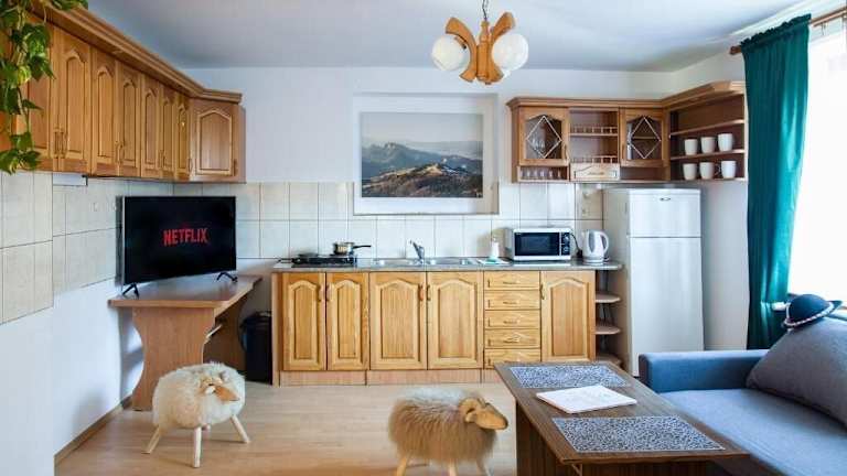 Die Unterkunft Miedzy Owcami liegt in Sromowce Wyżne in der Region Kleinpolen, nur wenige Kilometer von der Burg Niedzica entfernt. Die Umgebung bietet zahlreiche Möglichkeiten für Outdoor-Aktivitäten wie Wandern, Velofahren und Skifahren.