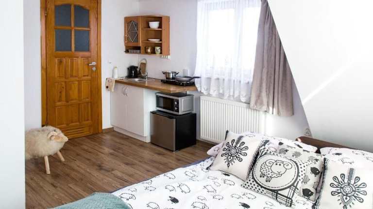 Miedzy Owcami bietet ein heimeliges Ambiente mit Annehmlichkeiten wie kostenlosem Wifi, einem Kinderspielplatz und kostenlosen Velos. Ein privater Parkplatz steht kostenlos zur Verfügung. Die Unterkunft wird von einem privaten Gastgeber geführt und legt Wert auf hohe Standards, insbesondere zum Schutz von Minderjährigen.