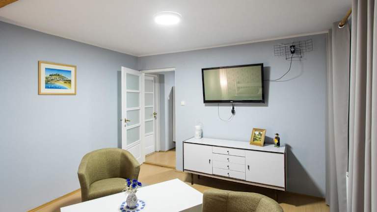 Die Unterkunft Między Zdrojami bietet einen Sitzbereich mit einem Flachbild-TV sowie ein eigenes Badezimmer mit kostenlosen Pflegeprodukten, einem Haartrockner und einer Dusche. In der Küche finden Gäste einen Kühlschrank, eine Mikrowelle, eine Herdplatte und einen Wasserkocher vor.