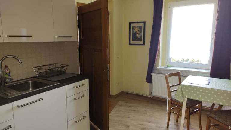 Die Ferienwohnung umfasst 1 Schlafzimmer, 1 Badezimmer, Bettwäsche und Handtücher. Zudem steht den Gästen ein Flachbild-TV, ein Essbereich sowie eine voll ausgestattete Küche zur Verfügung.