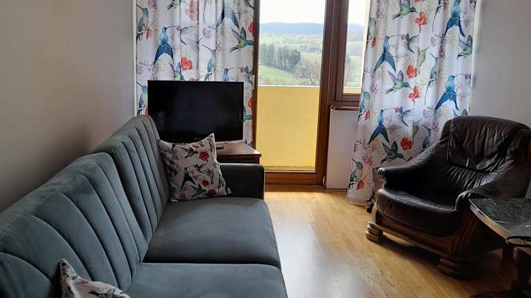 Mieszkanie z balkonem bietet eine Ferienwohnung mit einem Balkon und Bergblick. Die Unterkunft ist eine Nichtraucherunterkunft und wird von einem privaten Gastgeber geführt. Das Mindestalter für den Check-in beträgt 18 Jahre. Haustiere sind nicht gestattet. In der gesamten Unterkunft steht kostenloses Wifi zur Verfügung.