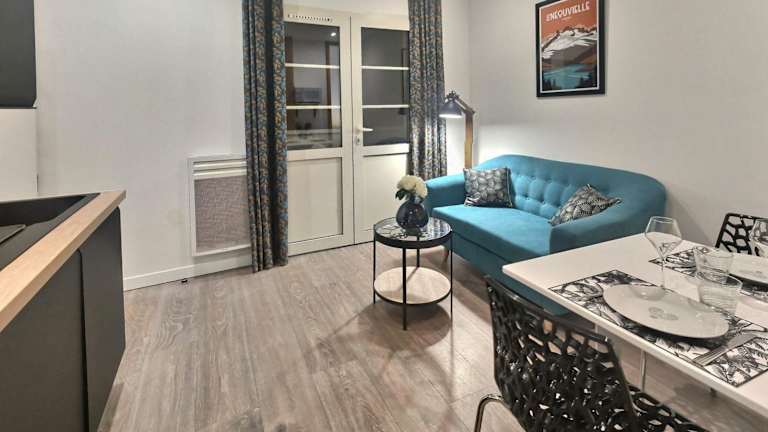 Das Appartement verfügt über ein Schlafzimmer, ein Badezimmer, Bettwäsche, Handtücher, einen Flachbild-TV, einen Essbereich sowie eine voll ausgestattete Küche. Ein Balkon mit Bergblick ergänzt die Ausstattung. Schallisolierte Zimmer sind ebenfalls vorhanden.