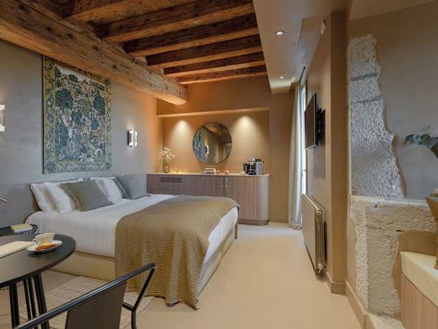 Die Zimmer in der Unterkunft MiHotel - Grenier à Sel de Pérouges sind komfortabel eingerichtet und ausgestattet mit Klimaanlage, einer Mikrowelle, einer Minibar, einer Kaffeemaschine und einer Dusche. Kostenlose Pflegeprodukte, Bettwäsche und Handtücher sind ebenfalls vorhanden. Jedes Zimmer bietet einen Safe, während ausgewählte Zimmer eine Terrasse sowie Gartenblick aufweisen. Die Wohneinheiten sind durch ihren Kleiderschrank gekennzeichnet.