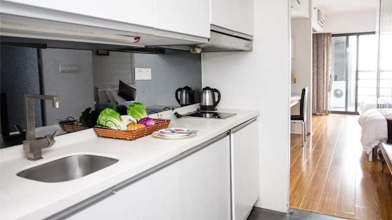 Die geräumigen Apartments bieten eine moderne Ausstattung, die eine voll eingerichtete Küche mit Küchenutensilien, einer Mikrowelle und einem Kühlschrank beinhaltet. Die Apartments sind mit schallisolierten Zimmern ausgestattet und bieten alles für einen angenehmen Aufenthalt, einschliesslich täglicher Reinigung.