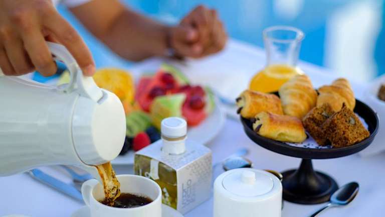 Im Garten wird ein reichhaltiges Frühstück mit frischem Obst, Chäse, Eiern und hausgemachtem Gebäck serviert. Die Unterkunft bietet zudem Möglichkeiten für spezielle Ernährungsbedürfnisse auf Anfrage.
