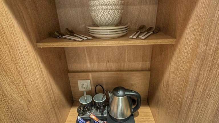 Die Übernachtungsmöglichkeiten in MIKE'S STUDIOS sind klimatisiert und verfügen über einen Kühlschrank sowie einen Wasserkocher.
