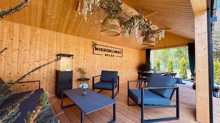 Die Unterkunft MikroKlimat Komfort bietet eine heimelige Atmosphäre mit einem Garten und einer Terrasse. Die Gäste können die hauseigene Sauna nutzen. Des Weiteren gibt es einen Kinderspielplatz für die kleinen Gäste sowie Grillmöglichkeiten für gemeinsame Grillabende.