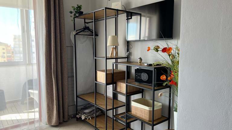 Die Ferienwohnung ist ausgestattet mit einem Schlafzimmer, einem Badezimmer, Bettwäsche, Handtüchern, einem Flachbild-TV und einer voll ausgestatteten Küchenzeile. Zudem bietet das Apartment einen Balkon mit Stadtblick.