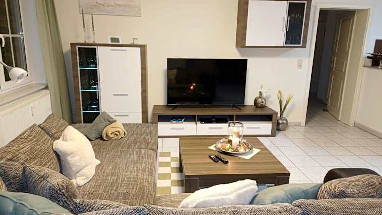 Die Ferienwohnung umfasst ein Wohnzimmer, einen Essbereich, 2 Schlafzimmer sowie 1 Badezimmer mit Dusche. Zur Ausstattung gehören zudem ein Blu-ray-Player, eine Küche mit Kühlschrank, Geschirrspüler und Ofen. Handtücher und Bettwäsche werden gestellt.