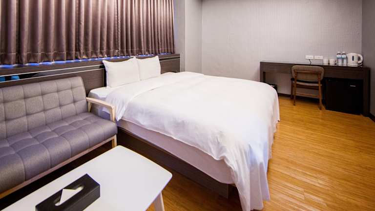 Jedes Gästezimmer ist mit Klimaanlage, Betten mit Schwänefederbettwäsche, einem LCD-Fernseher, einem privaten Badezimmer, Haartrockner, einem Schreibtisch, einem Wasserkocher, einem Kühlschrank und kostenlosen taiwanesischen Toilettenartikeln ausgestattet. Zusätzliche Annehmlichkeiten wie Handtücher, Bettwäsche und Reinigungsservices sind ebenfalls vorhanden.