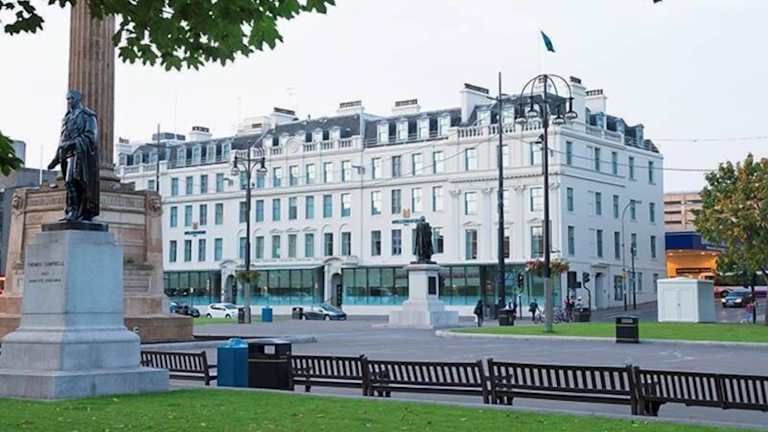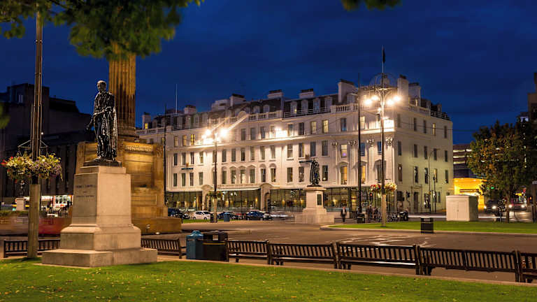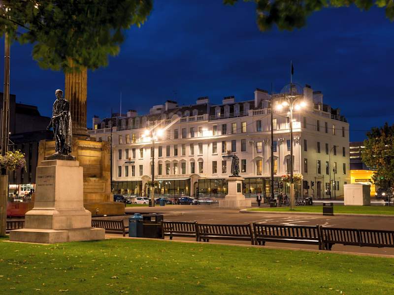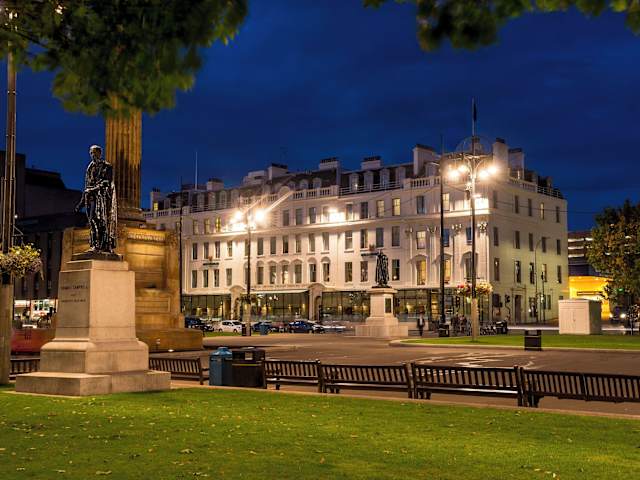 Das Millennium Hotel Glasgow befindet sich im Zentrum von Glasgow am George Square, direkt neben dem Bahnhof Glasgow Queen Street. Verschiedene Restaurants, Bars und Geschäfte sind in unmittelbarer Nähe erreichbar. Die Entfernung zum Flughafen beträgt ca. 15 km, während der Golfplatz etwa 9.5 km entfernt ist.