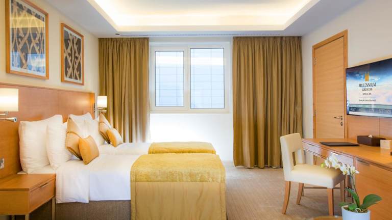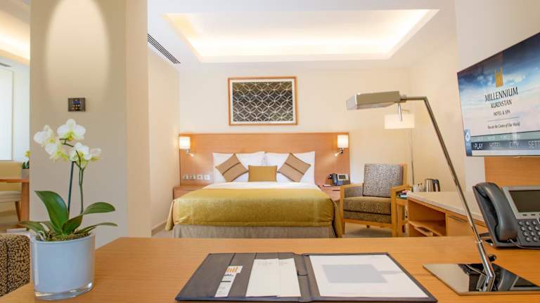 Die Zimmer im Millennium Kurdistan Hotel & Spa sind modern eingerichtet und mit einer Minibar sowie einem Flachbild-TV ausgestattet. Jedes Zimmer verfügt über ein eigenes Bad mit kostenfreien Pflegeprodukten.
