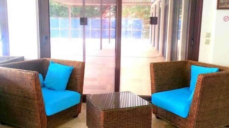 Das Hotel verfügt über ein 3-stöckiges Haupthaus sowie 6 Nebengebäude, in denen insgesamt 10 Junior-Suiten und 32 Suiten zur Verfügung stehen. Die Rezeption ist rund um die Uhr besetzt. Zu den Einrichtungen zählen ein Garten, ein TV-Raum und Geschäfte. WLAN steht gegen Gebühr zur Verfügung. Parkiermöglichkeiten sind vorhanden, jedoch unbewacht und ebenfalls gegen Gebühr.