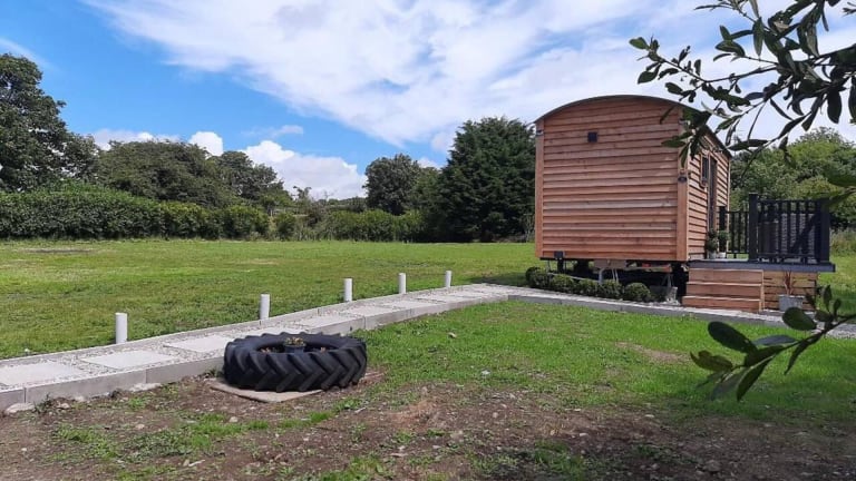 Min yr Afon - Cabin bietet Platz für zwei Personen und verfügt über eine gemütliche Veranda oder einen Patio. Die Unterkunft ist umgeben von idyllischer Natur und bietet eine entspannende Atmosphäre.