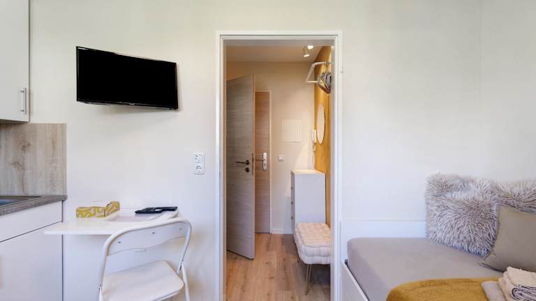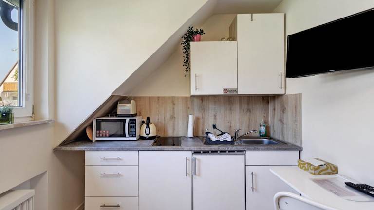 Das Mini Apartment ist ausgestattet mit einem Kabel TV, einer gut eingerichteten Küche mit Kühlschrank, Mikrowelle und Herdplatte. Zur Ausstattung gehören zudem eine Dusche, kostenlose Pflegeprodukte und ein Haartrockner. Die Unterkunft bietet Parkplatzmöglichkeiten und ist für Gäste ab 18 Jahren zugänglich.