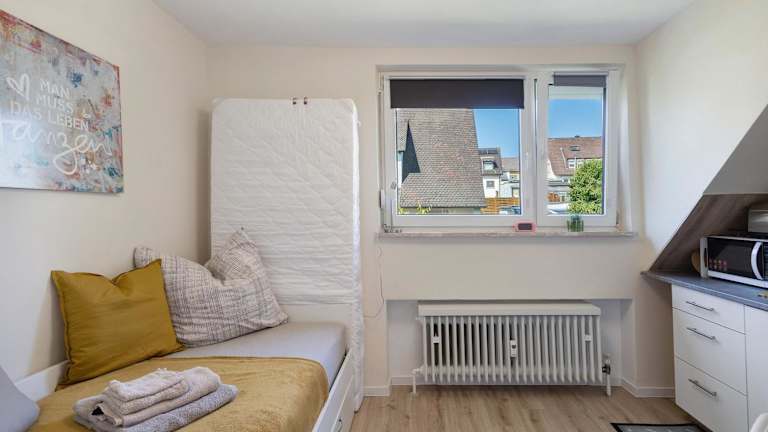 Die Unterkunft Mini Apartment befindet sich in Bayreuth, etwa 3,3 km von der Oberfrankenhalle entfernt. Der Hauptbahnhof ist 4,2 km entfernt. Die Umgebung bietet zahlreiche Möglichkeiten zum Wandern und Velofahren. Der nächstgelegene Flughafen ist der Flughafen Nürnberg, 85 km von der Unterkunft entfernt.