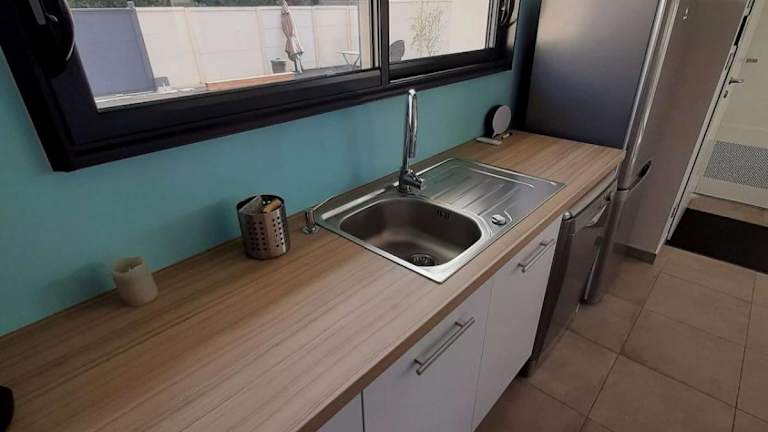 Die Villa verfügt über ein Schlafzimmer, einen Flachbild-TV sowie eine gut ausgestattete Küche. Der Garten bietet einen geschlossenen Bereich für Entspannung.