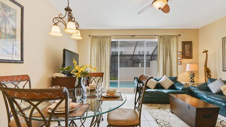 Minnies Townhouse in Windsor Palms Resort bietet eine Vielzahl an Annehmlichkeiten, darunter einen Aussenpool, eine Gemeinschaftslounge, eine Terrasse sowie eine Bar. Die klimatisierte Unterkunft besteht aus einem Wohnzimmer, einer voll ausgestatteten Küche und drei Schlafzimmern. Es steht ein Whirlpool zur Verfügung.