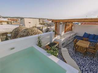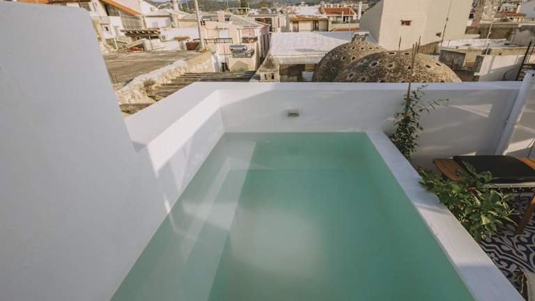 Die Minoos Residence with roof pool bietet Übernachtungsmöglichkeiten in einem heimeligen Ferienhaus, ausgestattet mit einem saisonalen Aussenpool, Stadtblick, einer Terrasse und Grillmöglichkeiten. Die Unterkunft hat Klimaanlage und kostenloses Wifi zur Verfügung.