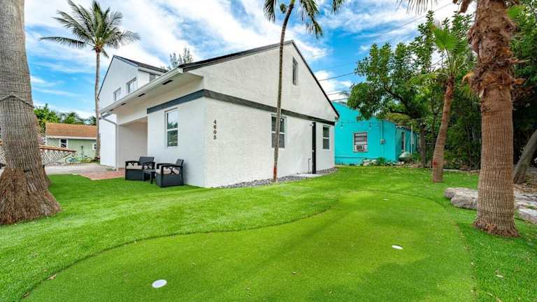 Mins to Beach Recently remodeled Putting Green ist ein vor kurzem renoviertes Ferienhaus, welches Komfort und Bequemlichkeit in einer ruhigen Umgebung vereint. Die Unterkunft bietet eine heimelige Atmosphäre und eine Gartenlandschaft, die zum Entspannen einlädt.