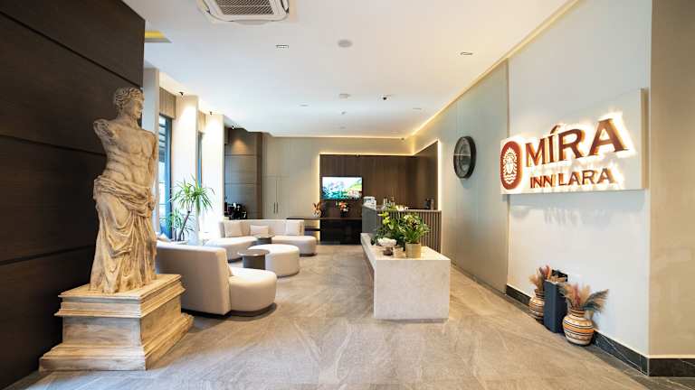Mira Inn Lara bietet eine 24h Rezeption, Nichtraucherzimmer, einen Conciergeservice sowie ein Restaurant und eine Bar. WLan/WiFi ist im gesamten Hotel ohne Gebühr verfügbar. Das Hotel hat 35 Zimmer und erlaubt keine Feierlichkeiten wie Junggesellenabschiede. Der Betrieb ist für Personen mit eingeschränkter Mobilität im Allgemeinen nicht geeignet.