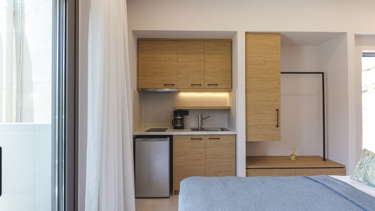 Die Unterkunft verfügt über eine voll ausgestattete Küchenzeile, die es Gästen ermöglicht, sich selbst zu versorgen. Ausgestattet ist diese mit einem Kühlschrank, einer Herdplatte, einem Toaster und einer Kaffeemaschine. Zudem bietet die Unterkunft Wein und Sekt an.