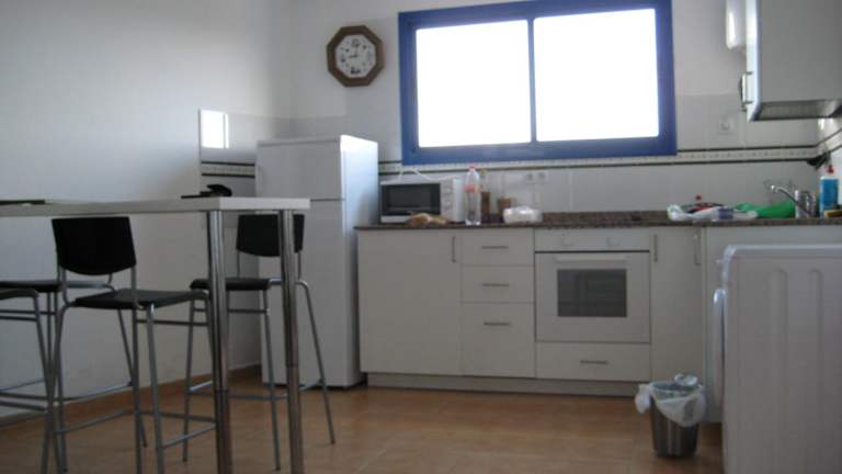 Die Ferienwohnung ist mit einer Küchenzeile ausgestattet, die einen Kühlschrank, einen Ofen und eine Kaffeemaschine umfasst. Keine weiteren Verpflegungsmöglichkeiten sind angegeben.
