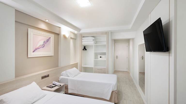 Die Zimmer sind mit Klimaanlage, Heizung, Doppelbett oder Queensize-Bett sowie einem Sofabett ausgestattet. In den meisten Unterkünften können Gäste den Meerblick geniessen. Weitere Annehmlichkeiten sind ein Safe, eine Minibar und eine Hosenpresse. Die Badezimmer verfügen über eine Dusche. Es sind auch rollstuhlgerechte Zimmer mit barrierefreiem Bad vorhanden. Familien- und Nichtraucherzimmer stehen ebenfalls zur Verfügung.