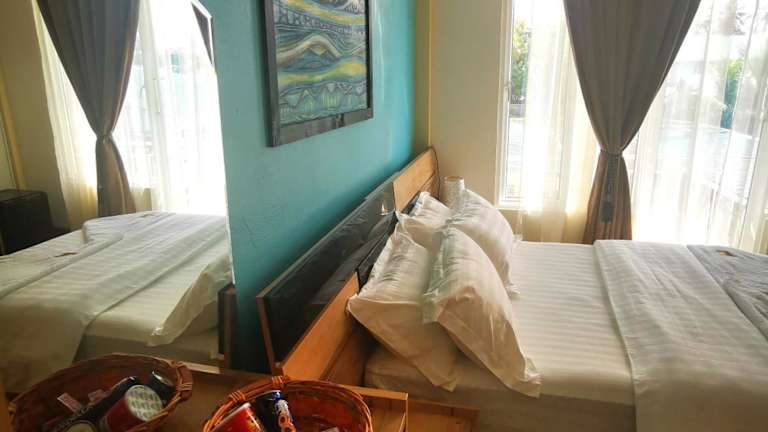 Das Hotel Mirian Sky in Gaafaru ist der ideale Ort für einen erholsamen Urlaub. Hier können Sie kostenfreie Fahrräder nutzen, den Garten und die Terrasse genießen und sich in der Gemeinschaftslounge entspannen. Die Unterkunft bietet auch eine Kinderbetreuung und einen Kinderspielplatz. Der 24-Stunden-Service an der Rezeption, der Flughafentransfer und das kostenfreie WLAN sorgen für einen angenehmen Aufenthalt. Die Zimmer sind komfortabel eingerichtet und verfügen über ein eigenes Bad, einen Flachbild-TV und Klimaanlage. Einige Zimmer haben auch einen Balkon. Das tägliche Frühstück bietet eine Vielzahl von Speisen, darunter kontinentale, englische/irische und italienische Gerichte. Im Hotel Mirian Sky können Sie auch den Grillplatz nutzen, um Ihre eigenen Mahlzeiten zuzubereiten.