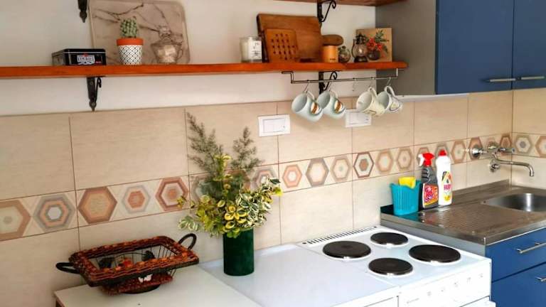 Die Ferienwohnung verfügt über ein Schlafzimmer und ein Wohnzimmer, ausgestattet mit einem Flachbild-TV. Eine gut eingerichtete Küche mit Kühlschrank und Ofen ist vorhanden. Das Badezimmer ist mit einer Dusche ausgestattet, und Handtücher sowie Bettwäsche werden bereitgestellt.