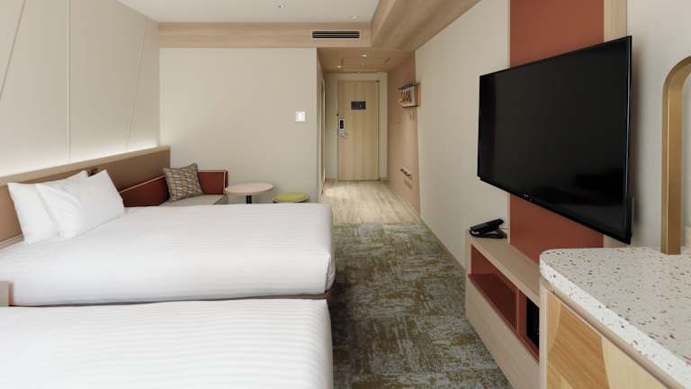Die Zimmer sind modern eingerichtet und verfügen über eine Klimaanlage, ein Badezimmer, ein Doppelbett oder ein Queensize-Bett, einen Kühlschrank sowie einen Schreibtisch. Zur weiteren Ausstattung gehören ein Safe, ein TV-Gerät, WiFi und Hausschuhe. Die Badezimmer sind mit einem Bidet und einem Haartrockner ausgestattet.