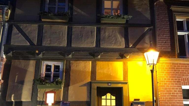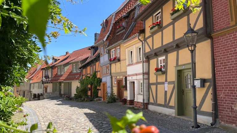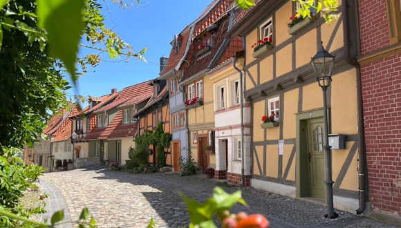 Die Unterkunft Mittelalterdomizil mit Balkon und Parkplätzen liegt ungefähr 700 m von der Altstadt Quedlinburg entfernt, in der Nähe zum Bahnhof Quedlinburg, welcher 1,1 km entfernt ist. Der nächstgelegene Flughafen ist der Flughafen Leipzig/Halle, welcher etwa 108 km von der Unterkunft entfernt gelegen ist.