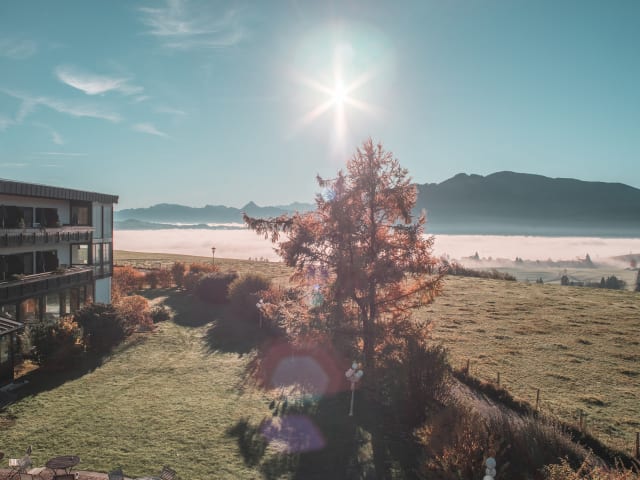 Herzlich willkommen im Hotel Mittelburg, dein Wellnesshotel im Allgäu. Unser Berghotel auf 1000 Metern über dem Meer bietet dir einen freien Blick auf die weiten alpinen Wiesen und das Allgäuer Alpen Panorama. Umgeben von zahlreichen Badeseen, Bergseen, Weihern und Bächen und zwischen Füssen, Oberstdorf und Oberstaufen gelegen, sind wir der ideale Ausgangspunkt für Radtouren und Bergtouren, egal ob Sommer oder Winter in die bayrische Bergwelt. In den 28 Hotelzimmern, Juniorsuiten und Suiten in alpinem Stil mit Süd Balkonen genießt du den traumhaften Ausblick vom Grünten bis zur Zugspitze. Dazu gibt es die besondere Kulinarik der Mittelburg. Nah an der Region und doch offen für die Welt. Traditionell und verwurzelt mit dem Allgäu und doch neu gedacht. Finde deinen Lieblingsplatz im familiengeführten 4-Sterne Wellnesshotel in Oy-Mittelberg. Lassen Sie sich einfach von uns verwöhnen. Wir freuen uns auf Sie! Ihre Familie Mayr mit Team