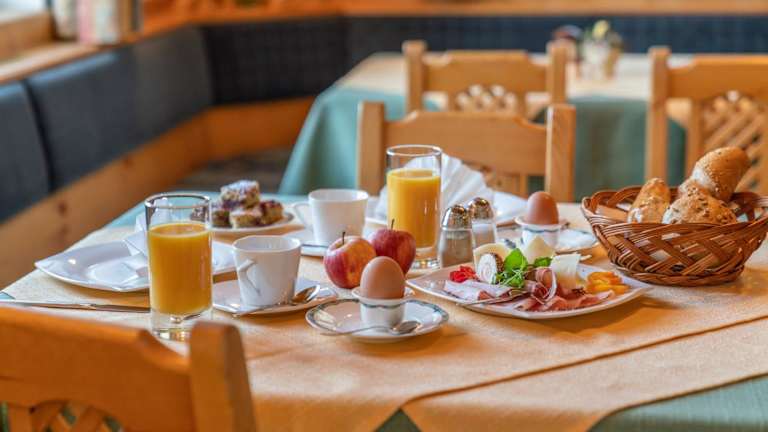 Ein reichhaltiges Frühstücksbuffet wird in der Unterkunft angeboten und bietet eine ideale Grundlage für einen aktiven Tag in den Bergen.