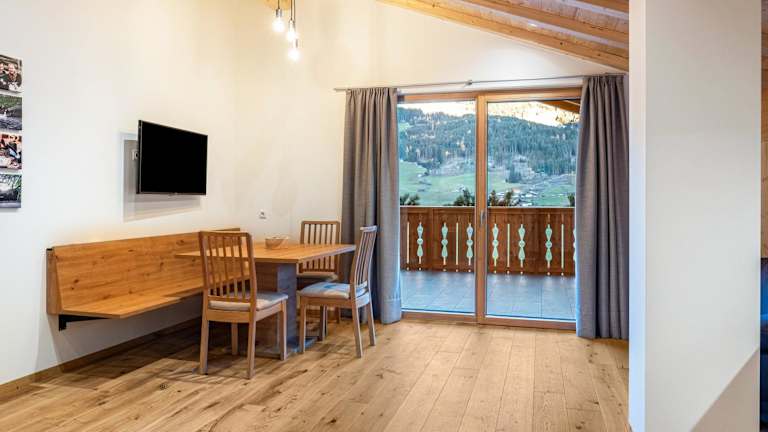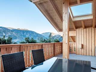 Die Ferienwohnung bietet zwei Schlafzimmer, ein Wohnzimmer und ein Badezimmer mit einer Dusche. Zu den Annehmlichkeiten gehören ein TV, Handtücher und Bettwäsche. Ein Balkon mit Bergblick und Gartenmöbel ergänzen die Ausstattung.
