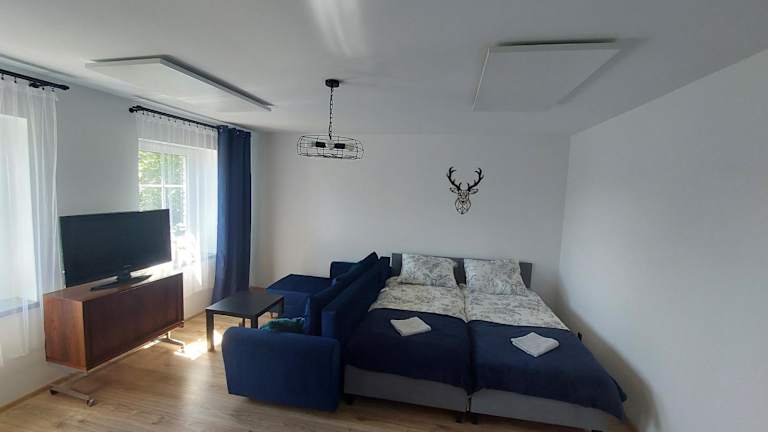 Die Unterkunft bietet ein Zimmer mit einem Wohnzimmer, das mit einem Flachbild-TV ausgestattet ist. Eine komplett eingerichtete Küche mit Kühlschrank ist ebenfalls vorhanden. Handtücher und Bettwäsche können gegen Aufpreis bereitgestellt werden. Die Unterkunft bietet auch Internetzugang, Heizung und Privatparkplatz. Es handelt sich um Nichtraucherzimmer, und die Unterkunft ist familienfreundlich.