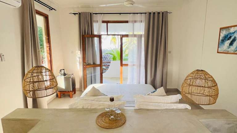 Die Zimmer in den Mnana Beach Bungalows sind komfortabel eingerichtet und bieten entweder einen Balkon mit Gartenblick oder Meerblick. Jedes Zimmer verfügt über ein eigenes Bad mit Dusche und kostenlosen Pflegeprodukten. Bettwäsche und Handtücher sind ebenfalls vorhanden, so dass Sie sich um nichts kümmern müssen.