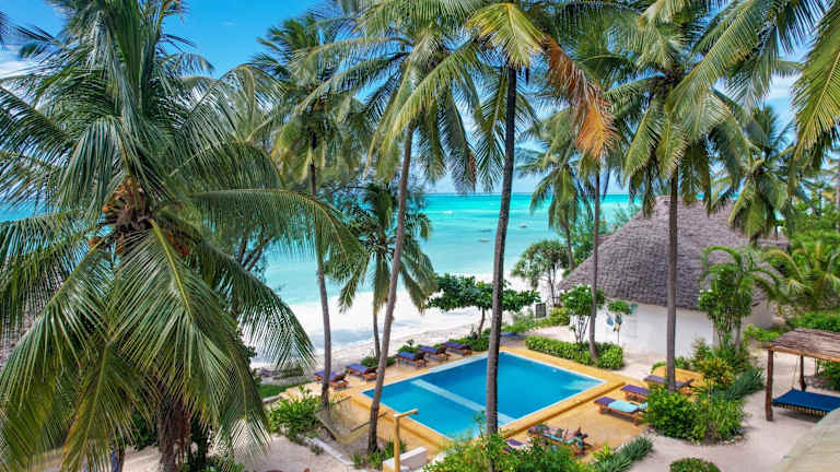 Die Mnana Beach Bungalows in Michamvi sind der perfekte Ort, um einen entspannten Strandurlaub zu verbringen. Mit einem Außenpool, einem eigenen Strandbereich und einem Restaurant bietet die Unterkunft alles, was Sie für einen angenehmen Aufenthalt benötigen. Die Zimmer sind komfortabel eingerichtet und bieten entweder einen Balkon mit Gartenblick oder Meerblick. Starten Sie Ihren Tag mit einem leckeren kontinentalen oder vegetarischen Frühstück und erkunden Sie die Umgebung mit dem Fahrrad, das Sie im Hotel ausleihen können. Besuchen Sie auch den Jozani-Wald, der nur 26 km entfernt liegt.