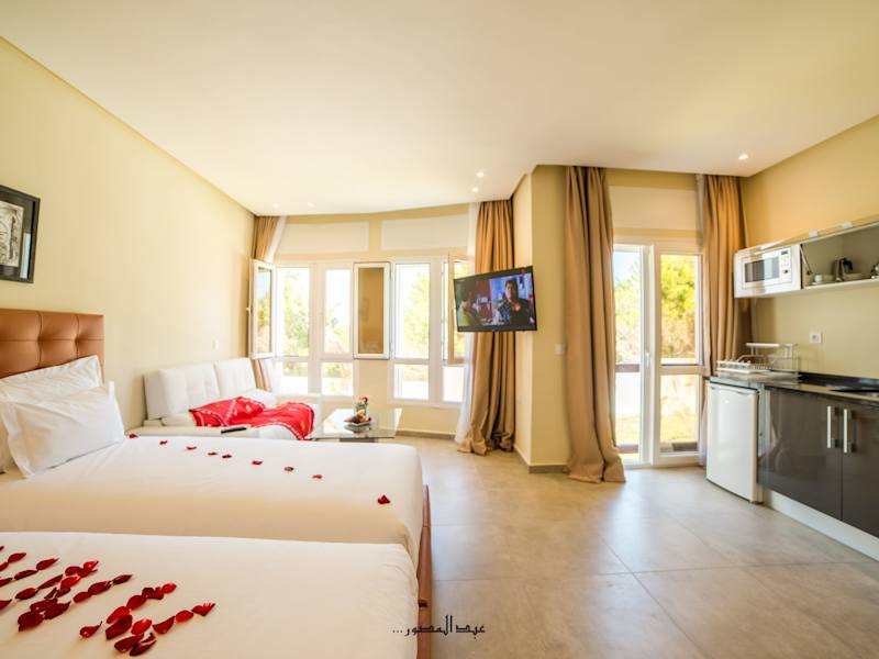 Das Mnar Park aqua park befindet sich in Tanger, nur 10 Gehminuten vom Strand entfernt. Das Stadtzentrum von Tanger ist 8 km entfernt und die alte Medina erreichen die Gäste nach 9 km. Vom Flughafen Tanger-Boukhalef liegt die Unterkunft etwa 20 km entfernt. Die Umgebung bietet Möglichkeiten für Ausritte, Buggy-Touren, Paintball und Kart-Rennen.