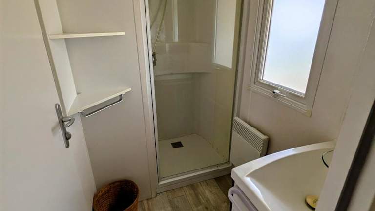 Alle Wohneinheiten des Mobil home 4x8m et terrasse 18m2 sind mit einem eigenen Badezimmer mit Dusche ausgestattet. Die Einrichtungen sind funktional, um den Bedürfnissen der Gäste gerecht zu werden.