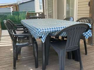 Das Mobil-home klimatisé à Valras Plage im Camping les Sables du Midi bietet eine Terrasse, ein Restaurant und eine Bar. Es handelt sich um eine Nichtraucherunterkunft mit Heizung und Klimaanlage. Haustiere sind gestattet und es gibt eine Parkiermöglichkeit.