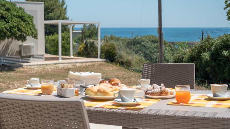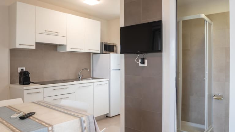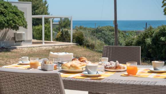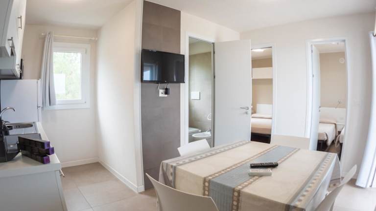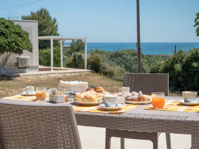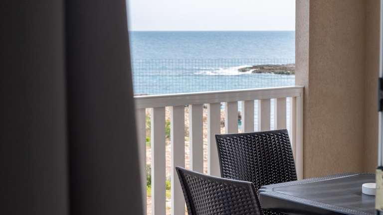 Die Unterkunft bietet eine Veranda oder einen Patio mit Meerblick. In den Unterkünften sind ein Sitzbereich, ein Satelliten Flachbild-TV und eine voll ausgestattete Küche mit Kühlschrank, Ofen und Herdplatte vorhanden. Auch eine Kaffeemaschine und ein eigenes Badezimmer mit Bidet und Haartrockner stehen zur Verfügung.