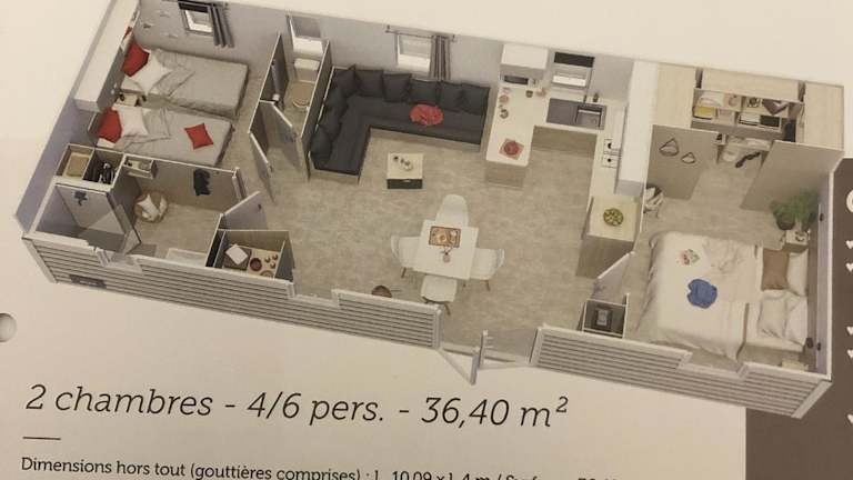 Die Mobilhome Confort Moana 1-6 p, Camping Sen-Yan 5 Stars bietet eine einladende Atmosphäre mit saisonalem Aussenpool, Restaurant und Bar. Zudem gibt es einen Wasserpark auf dem Gelände.