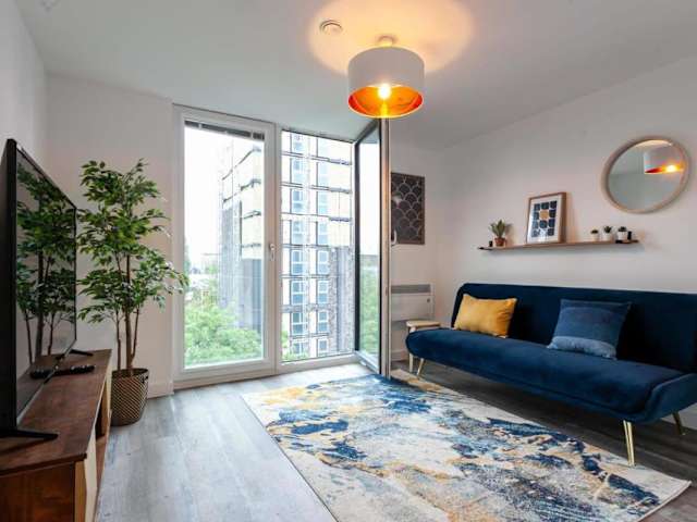 Das Modern 2 Bed Flat 5min to Old Trafford Stadium ist eine komfortable Ferienwohnung, die sich ideal für Aufenthalte in der Nähe von Old Trafford eignet. Sie ist geschmackvoll eingerichtet und bietet eine heimelige Atmosphäre. Zu den Annehmlichkeiten gehören kostenloses Wifi, eine Waschmaschine und ein Aufzug.